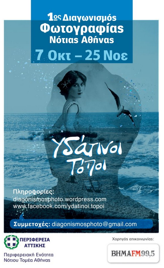 Η Περιφερειακή Ενότητα Νότιας Αθήνας της Περιφέρειας Αττικής, στο πλαίσιο της ευαισθητοποίησης του κοινού σε θέματα προστασίας του περιβάλλοντος και με γνώμονα την ανάδειξη της φυσικής ομορφιάς των περιοχών μας αλλά και των υπαρκτών προβλημάτων, διοργανώνει θεματικό Διαγωνισμό Φωτογραφίας, ανοικτό σε όλους τους ενδιαφερόμενους, με θέμα “Υδάτινοι Τόποι”. Οι φωτογραφίες, που θα πρέπει να είναι τραβηγμένες εντός των ορίων των Δήμων της ΠΕ, θα εστιάσουν μεταξύ άλλων στο υδάτινο μέτωπο, τα ποτάμια, άλλες συγκεντρώσεις νερού αλλά και τις υπόλοιπες μορφές του. Ο Διαγωνισμός θα διαρκέσει ως τις 25 Νοεμβρίου 2011