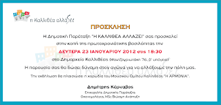 ΔΕΥΤΕΡΑ 23 ΙΑΝΟΥΑΡΙΟΥ 2012 στις 18:30 στο Δημαρχείο Καλλιθέας (Μαντζαγριωτάκη 76, β’υπόγειο)