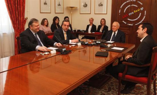 Ο Πρόεδρος της Δημοκρατίας αργά το βράδυ της Κυριακής ανακοίνωσε ότι καλεί σε νέα σύσκεψη για τις 7.30 σήμερα το απόγευμα με τη συμμετοχή των κυρίων Σαμαρά, Τσίπρα, Βενιζέλου και Κουβέλη.