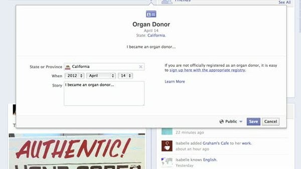 Εφεξής όσοι το επιθυμούν θα μπορούν να ανακοινώνουν αν είναι δωρητές οργάνων. Με δεδομένο ότι εκατομμύρια άνθρωποι στον κόσμο θα μπορούσαν να επωφεληθούν από μια μεταμόσχευση, η κίνηση αυτή είναι βέβαιο ότι θα παρακινήσει και άλλους να ακολουθήσουν αυτό το παράδειγμα.