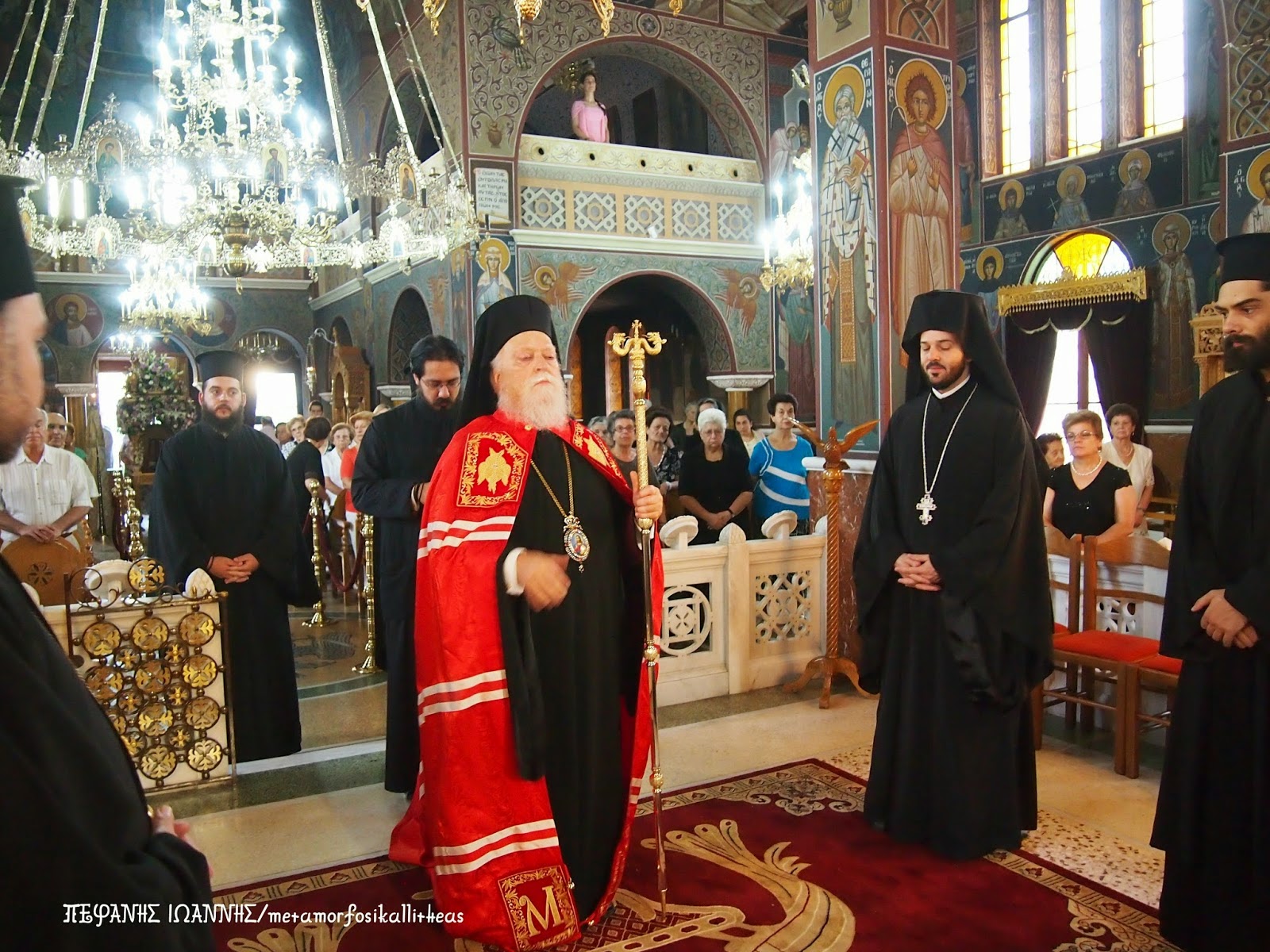 Η λέξη ”μεταμόρφωση” είπε ο Σεβασμιώτατος στο κήρυγμά του προήλθε από το ”μετεμορφώθη” του Ευαγγελίου, όταν, επάνω στο Θαβώρ η δόξα της θείας Φύσεως του Χριστού διεπέρασε το κέλυφος της ανθρώπινης φύσεώς Του, με την οποία ενώθηκε για να την ανακαινίσει.
