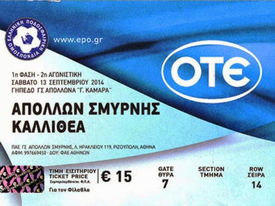 Τα εισιτήρια για τον αγώνα Απόλλωνα Σμύρνης – Καλλιθέα