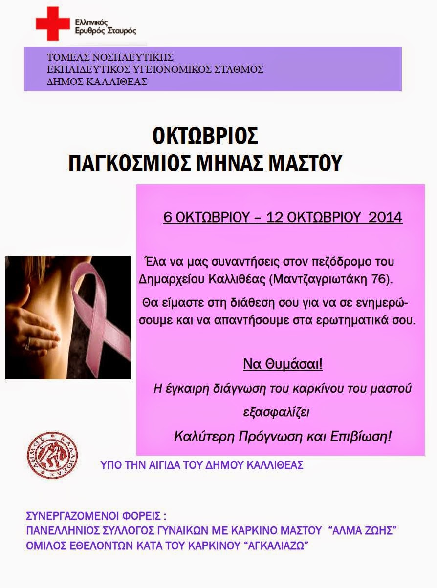 ΠΑΓΚΟΣΜΙΟΣ ΜΗΝΑΣ ΜΑΣΤΟΥ Δράση Ενημέρωσης των Δημοτών 6 – 12 Οκτωβρίου 2014