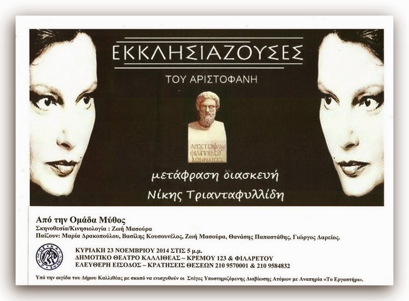 «ΕΚΚΛΗΣΙΑΖΟΥΣΕΣ» του Αριστοφάνη στο Δημοτικό Θέατρο Καλλιθέας 17 Νοεμβρίου, 20142 Φεβρουαρίου, 2023 athinapoli