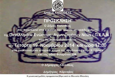 Εγκαίνια του χώρου ιστορικής μνήμης της Πανελληνίου Ενώσεως Αγωνιζομένων Νέων (Π.Ε.Α.Ν.) 13 Νοεμβρίου, 20142 Φεβρουαρίου, 2023 athinapoli