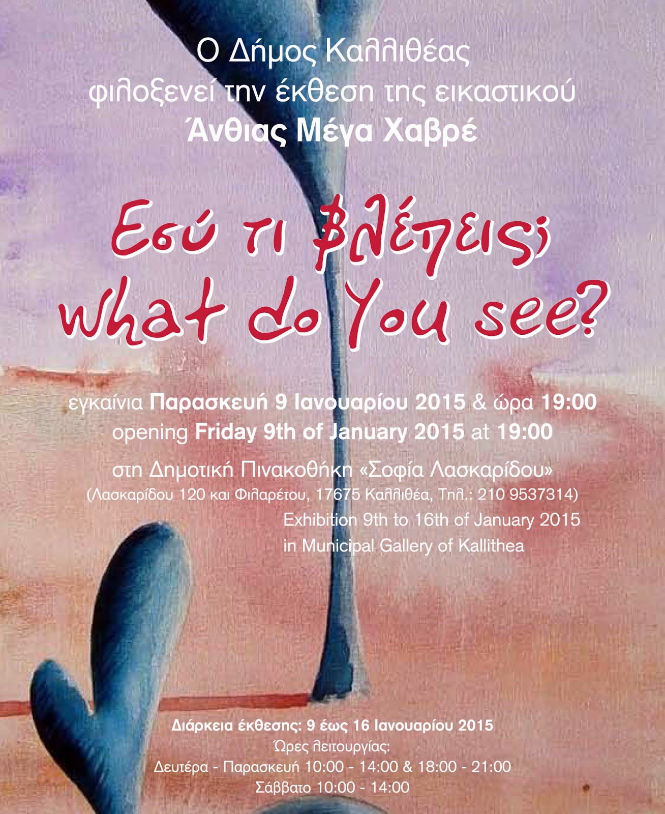 Εγκαίνια έκθεσης ζωγραφικής της εικαστικού ΑΝΘΙΑΣ ΜΕΓΑ ΧΑΒΡΕ 7 Ιανουαρίου, 20152 Φεβρουαρίου, 2023 athinapoli