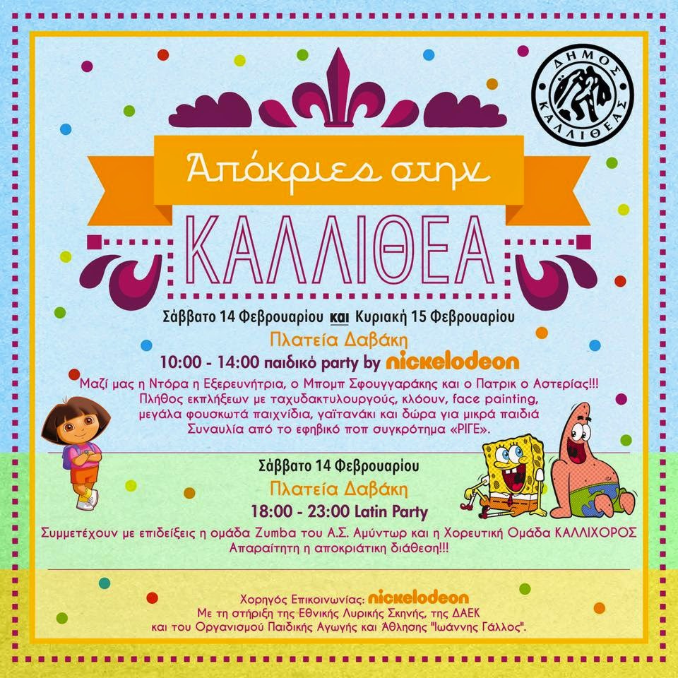 Σάββατο 14 και Κυριακή 15 Φεβρουαρίου στην πλατεία Δαβάκη, παιδικό πάρτυ με την Ντόρα την εξερευνήτρια, τον Μπόμπ τον Σφουγγαράκη και τον Πάτρικ τον Αστερία!!