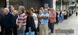 Χαρακτηριστικό παράδειγμα αυτό που συμβαίνει έξω από τράπεζα της Καλλιθέας, όπου συνταξιούχοι έχουν συγκεντρωθεί από τις 6 το πρωί για να πάρουν σειρά, να μπουν στο κατάστημα στις 8, όταν και ανοίγει και να εξυπηρετηθούν, φυσικά, πολύ αργότερα.