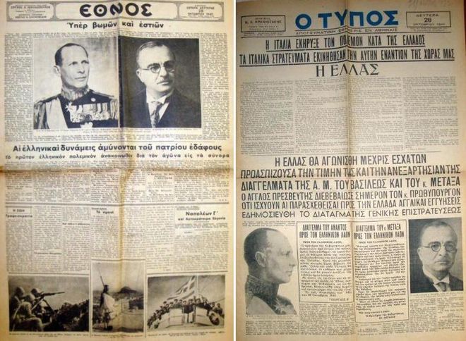 “Νύκτα στις τρείς με ξυπνούν, ο Τραυλός. Έρχεται ο Grazzi. -Πόλεμος! -Ζητώ αμέσως Νικολούδη, Μαυρουδή. -Αναφέρω Bασιλέα. -Καλώ Πάλαιρετ και ζητώ βοήθειαν Αγγλίας. -Κατεβαίνω 5 Υπουργικόν Συμβούλιον. Όλοι πιστοί και Μαυρουδής. -Όλοι πλην Κύρου. -Βασιλεύς. Περιφορά μαζί του. Φανατισμός του λαού αφάνταστος. -Μάχαι εις σύνορα Ηπείρου. -Βομβαρδισμοί. Σειρήνες. – Αρχίζουμε να τακτοποιούμεθα. Ο Θεός βοηθός!!” γράφει ο ίδιος ο Μεταξάς στο ημερολόγιό του την 28η Οκτωβρίου 1940.