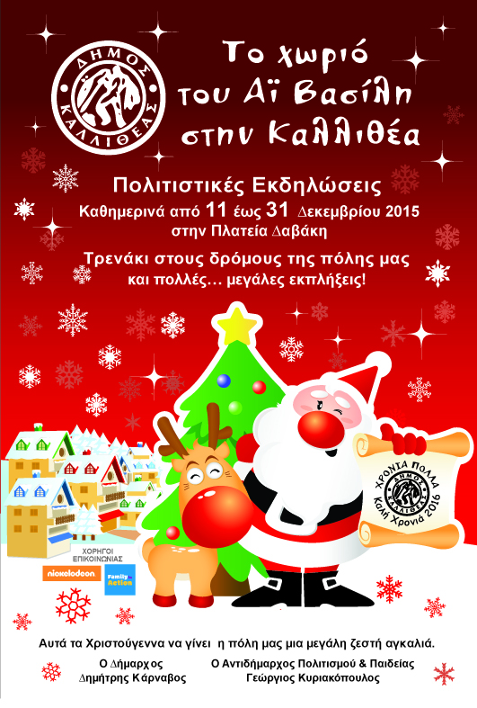 Οι εορταστικές εκδηλώσεις που ξεπερνούν τις 130, θα πραγματοποιούνται καθημερινά στους δρόμους και στις πλατείες της Καλλιθέας, στο Δημοτικό Θέατρο, στον Δημοτικό Κινηματογράφο «Καλυψώ» και στη Δημοτική Βιβλιοθήκη. Μεταξύ άλλων περιλαμβάνουν ένα πρόγραμμα γεμάτο μελωδίες και κάλαντα από τη Δημ. Φιλαρμονική, χορούς από τους Συλλόγους του Δήμου,