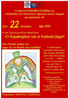 Την Τρίτη 22 Δεκεμβρίου στις 18:00 το απόγευμα οι μικροί φίλοι παρακολουθούν την παράσταση «Ο Καμπουράκος και οι Καλικάντζαροι» στην πλατεία Δαβάκη στη Καλλιθέα στο Χωριό του Άι Βασίλη.