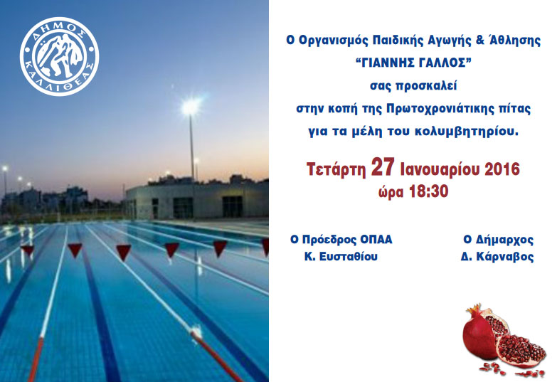 H πρωτοχρονιάτικη βασιλόπιτα για τα μέλη του Κολυμβητηρίου Καλλιθέας 25 Ιανουαρίου, 20162 Φεβρουαρίου, 2023 nxtypos