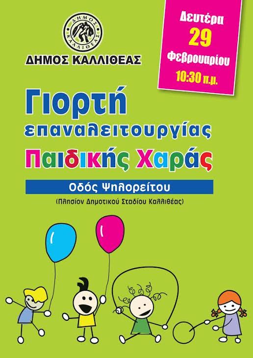 Τη Δευτέρα 29 Φεβρουαρίου ο Δήμος Καλλιθέας θα παραδώσει στους κατοίκους της πόλης άλλη μία παιδική χαρά που βρίσκεται στην οδό Ψηλορείτου (πλησίον του Δημοτικού Σταδίου της Καλλιθέας) η οποία ήταν για χρόνια κλειστή.