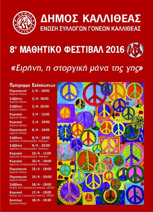Ανοίγει σήμερα τις πύλες του το 8ο Μαθητικό Φεστιβάλ του Δήμου Καλλιθέας που είναι αφιερωμένο στην «Ειρήνη».