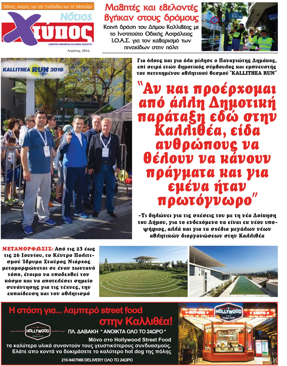 Οι προσπάθειες κορυφώνονται. Αυτή τη στιγμή που μιλάμε έχω ημερομηνία για το 6ο KALLITHEA RUN 2017, αλλά δεν θα σου πω ακόμα. Και δεν σου κρύβω ότι μέσα στα άμεσα σχέδιά μου είναι να κάνουμε και άλλες μεγάλες διοργανώσεις για τον αθλητισμό της πόλης μας και τους Καλλιθεάτες.