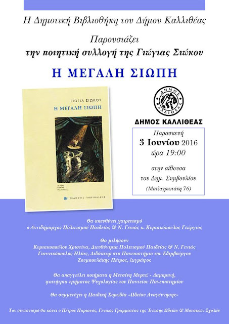 Η Δημοτική Βιβλιοθήκη του Δήμου Καλλιθέας παρουσιάζει την ποιητική συλλογή της Γιώγιας Σιώκου 30 Μαΐου, 20162 Φεβρουαρίου, 2023 nxtypos