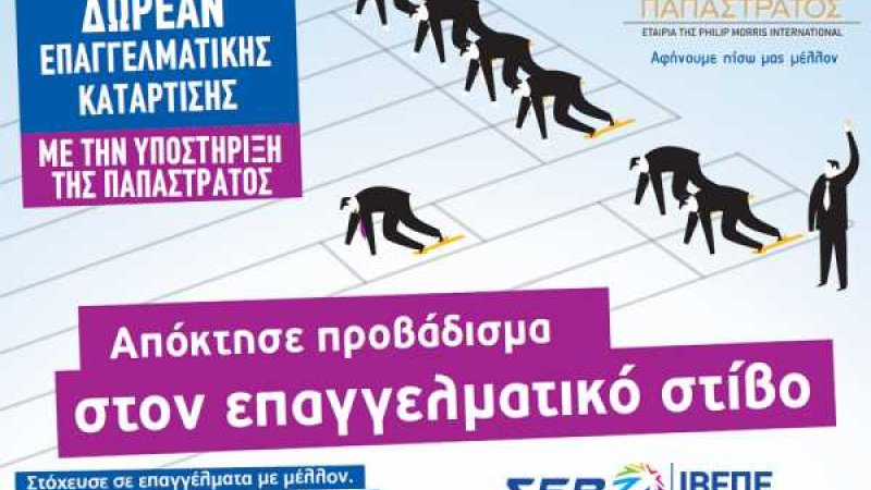 Εως 30/9 μπορούν οι ενδιαφερόμενοι να υποβάλλουν αιτήσεις για το νέο μεγάλο πρόγραμμα επαγγελματικής κατάρτισης 1.000 ανέργων στην Αθήνα, τη Θεσσαλονίκη, την Πάτρα και τον Βόλο ξεκινά με την αποκλειστική χρηματοδότηση της ΠΑΠΑΣΤΡΑΤΟΣ, σε συνεργασία με το Ινστιτούτο Βιομηχανικής και Επιχειρησιακής Επιμόρφωσης & Κατάρτισης (ΣΕΒ-ΙΒΕΠΕ).