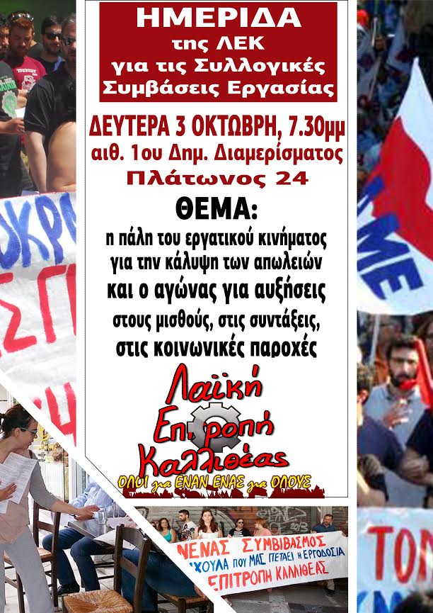 ΠΡΟΣΚΛΗΣΗ ΣΤΗΝ ΗΜΕΡΙΔΑ ΤΗΣ ΛΑΪΚΗΣ ΕΠΙΤΡΟΠΗΣ ΚΑΙ ΤΗΣ ΕΠΙΤΡΟΠΗΣ ΑΝΕΡΓΩΝ ΚΑΛΛΙΘΕΑΣ ΓΙΑ ΤΙΣ ΣΥΛΛΟΓΙΚΕΣ ΣΥΜΒΑΣΕΙΣ ΕΡΓΑΣΙΑΣ ΜΕ ΘΕΜΑ: