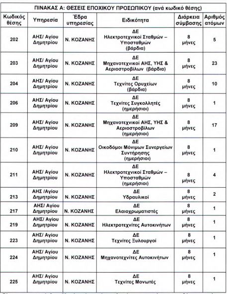 Ανακοίνωση για την πρόσληψη, με σύμβαση εργασίας ιδιωτικού δικαίου ορισμένου χρόνου, συνολικά εξήντα οκτώ (68) ατόμων για την κάλυψη εποχικών ή παροδικών αναγκών του ΑΗΣ ΑΓΙΟΥ ΔΗΜΗΤΡΙΟΥ, που εδρεύει στον Νομό Κοζάνης, εξέδωσε η ΔΕΗ.