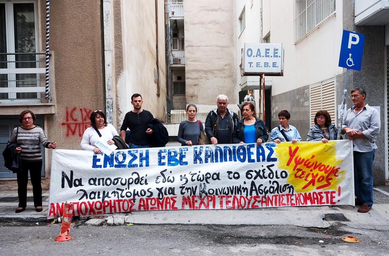 Το Δ.Σ. της Ένωσης ΕΒΕ Καλλιθέας, με απόφαση του, πραγματοποίησε παράσταση, στον ΟΑΕΕ Καλλιθέας, την Τετάρτη 9 Νοέμβρη 2016 στις 8,30π.μ. και επέδωσε υπόμνημα, με το πλαίσιο αιτημάτων που αφορούν τα καυτά προβλήματα ασφάλισης και συνταξιοδότησης των αυτοαπασχολούμενων.
