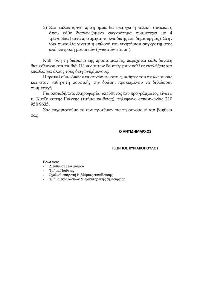 Ο Δήμος Καλλιθέας διοργανώνει για πρώτη φορά Διαγωνισμό Σχολικών Μουσικών Συγκροτημάτων για τους μαθητές Γυμνασίων και Λυκείων της πόλης μας!!!