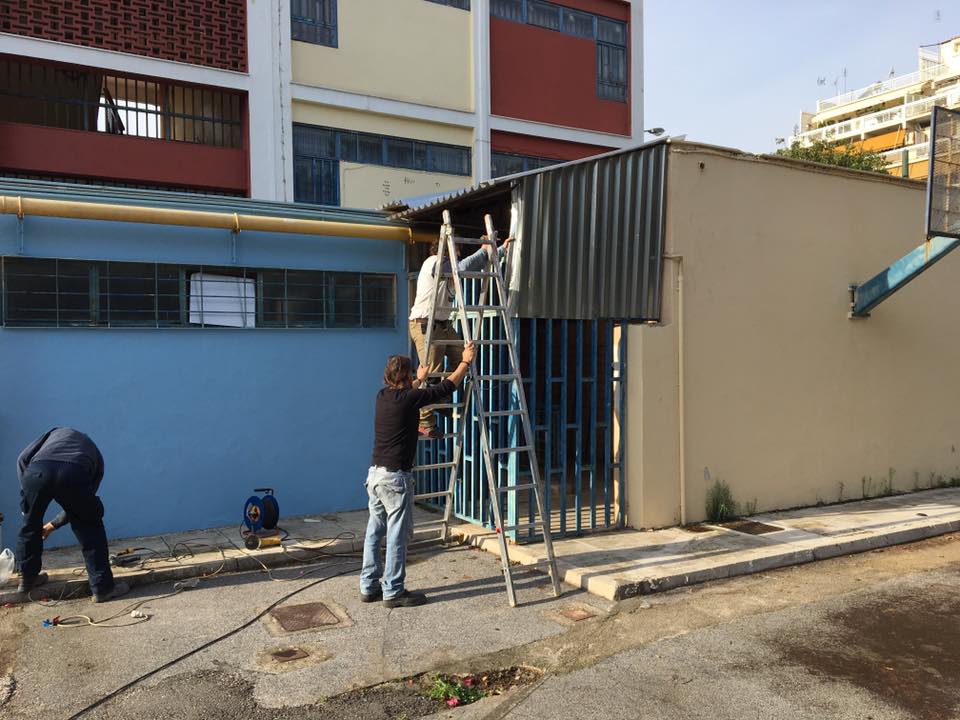 Οι εργασίες στα σχολεία δεν σταματάνε ούτε την Κυριακή! Σε συνεργασία με τα τεχνικά συνεργεία του Δήμου έγινε ένα “λίφτινγκ” στην πίσω αυλή του 10ου Γυμνασίου και 4ου Λυκείου της πόλης μας! Μπήκαν προστατευτικά σίδερα για την προστασία των ηλεκτρολογικών μερών του σχολείου και αντικαταστάθηκαν όλα τα ξύλα στα παγκάκια για να κάθονται άνετα τα παιδιά μας!!!!