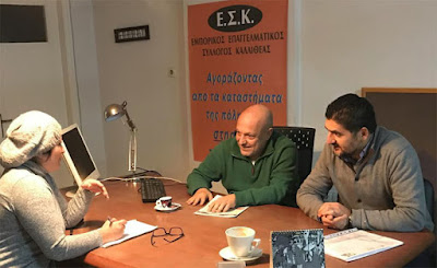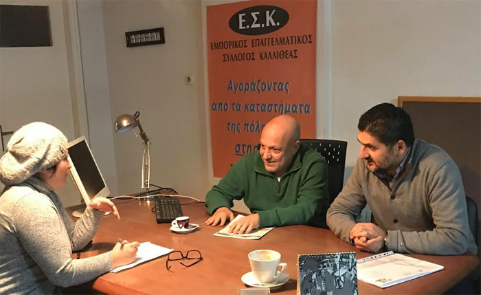 Η ενδιαφέρουσα συζήτησή μας με τον Πρόεδρο και τον Αντιπρόεδρο του Εμπορικού και Επαγγελματικού Συλλόγου Καλλιθέας έκλεισε με την ευχή Χρόνια Πολλά και πιο προσοδοφόρα.