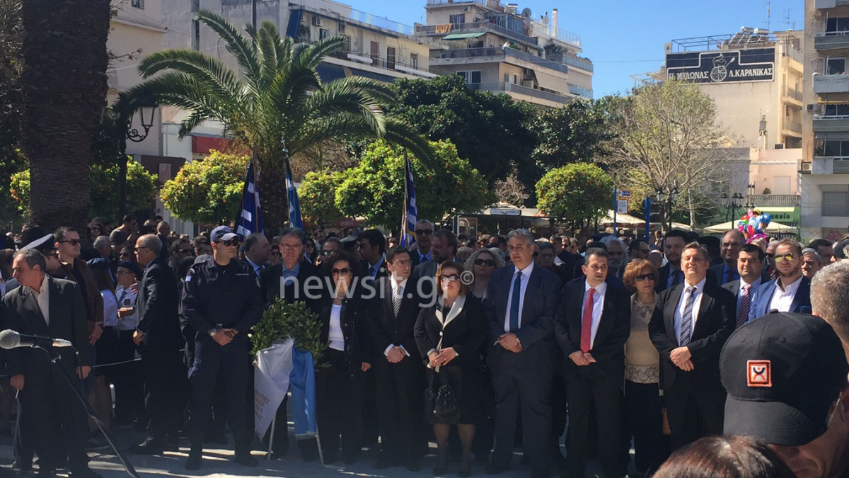 Τελικά η Χρυσή Αυγή δεν κατέθεσε στεφάνι και εκδηλώσεις και παρέλαση έγιναν κανονικά. Οι διαδηλωτές φώναξαν συνθήματα κατά της διάρκεια της τελετής και κατά της διάρκεια της ομιλίας του δημάρχου και σταμάτησαν μόνο κατά την ανάκρουση του Εθνικού Ύμνου. Μοναδικό παρατράγουδο συνέβη όταν κατά την αρχή της επιμνημόσυνης δέησης οι διαδηλωτές συνέχιζαν να φωνάζουν συνθήματα, αναγκάζοντας τον ιερέα να στραφεί προς το μέρος τους και να τους πει “ντροπή σας”