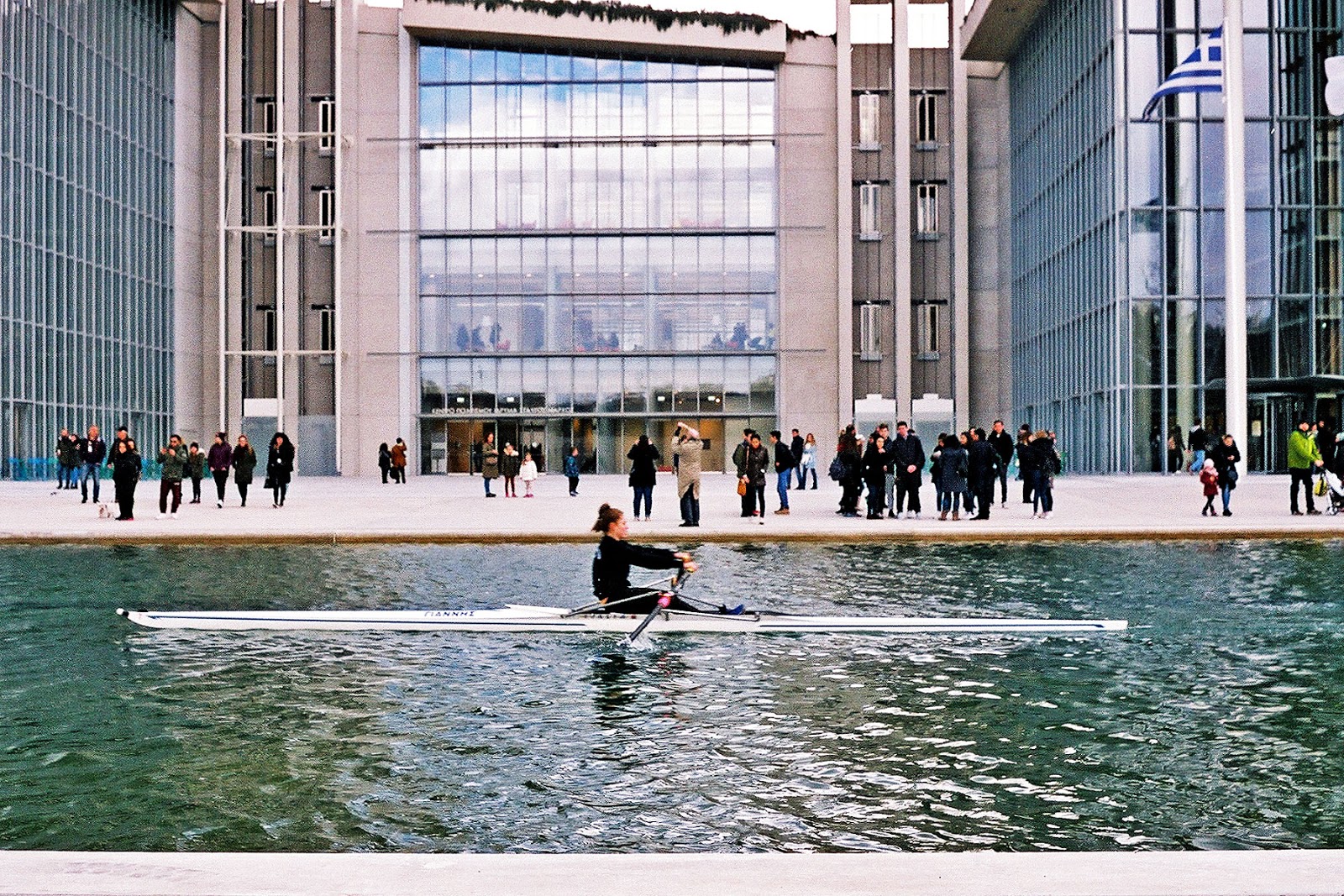 Για να είμαι ειλικρινής, δεν το είχα σχεδιάσει. Είχα την αίσθηση (και την έχω ακόμα) ότι το συγκεκριμένο μέρος θα υπερφωτογραφηθεί, ενώ παράλληλα γνώριζα ότι την επίσημη φωτογραφική τεκμηρίωση έχει αναλάβει ο Γιώργης Γερόλυμπος, ένας από τους σπουδαιότερους σύγχρονους Έλληνες φωτογράφους. Συνδυαζόμενα στο μυαλό μου τα δύο αυτά στοιχεία, για κάποιο λόγο με έκαναν να μην «πολυκαίγομαι» να πάω εκεί για να βγάλω φωτογραφίες. Όταν όμως σε μία άσκοπη βόλτα με το τραμ είδα στο βάθος τη μεγαλοπρεπή στέγη, λέω «δεν πετάγομαι μια που βρέθηκα εδώ;». Έτσι έφτασα στο «Κέντρο Πολιτισμού Ίδρυμα Σταύρος Νιάρχος» κάπου μία με μιάμιση ώρα πριν νυχτώσει. Ήταν Σάββατο, των Θεοφανίων. Μην έχοντας και πολύ χρόνο περιορίστηκα στο να κάνω μια γρήγορη βόλτα στους εξωτερικούς χώρους, που λόγω της ημέρας ήταν γεμάτοι κόσμο….