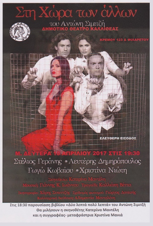 Η “Στη χώρα των άλλων” στο Δημοτικό Θέατρο Καλλιθέας, τη Δευτέρα 10 Απριλίου στις 7.30μμ 5 Απριλίου, 20172 Φεβρουαρίου, 2023 athinapoli