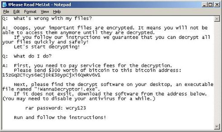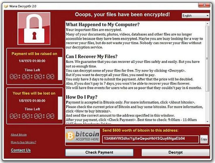 Για να ξεκλειδωθούν τα μολυσμένα αρχεία ενός Η/Υ, ζητείται η καταβολή χρηματικού ποσού, με τη χρήση του ψηφιακού νομίσματος Bitcoin ( BTC ) ως «λύτρα», σε διαφορετική περίπτωση καθίστανται απροσπέλαστα για το χρήστη τους.
