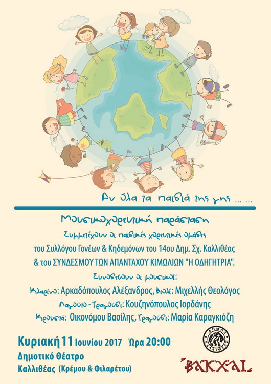 «Αν όλα τα παιδιά της γης…» 1 Ιουνίου, 20172 Φεβρουαρίου, 2023 athinapoli Σε συνεργασία με το Σύλλογο ΒΑΚΧΑΙ ΚΥΡΙΑΚΗ 11 ΙΟΥΝΙΟΥ 2017 στις 20:00 ΕΙΣΟΔΟΣ ΕΛΕΥΘΕΡΗ