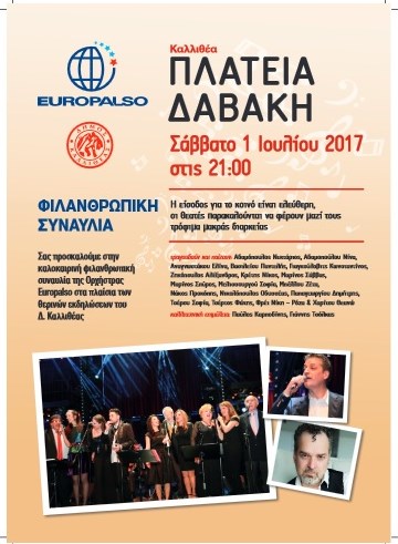 «ΦΙΛΑΝΘΡΩΠΙΚΗ ΣΥΝΑΥΛΙΑ» Από την Ορχήστρα Europalso 27 Ιουνίου, 20172 Φεβρουαρίου, 2023 athinapoli ΣΑΒΒΑΤΟ 1 ΙΟΥΛΙΟΥ 2017 στις 21:00 ΕΙΣΟΔΟΣ ΕΛΕΥΘΕΡΗ ΟΙ ΘΕΑΤΕΣ ΠΑΡΑΚΑΛΟΥΝΤΑΙ ΝΑ ΦΕΡΟΥΝ ΤΡΟΦΙΜΑ ΜΑΚΡΑΣ ΔΙΑΡΚΕΙΑΣ