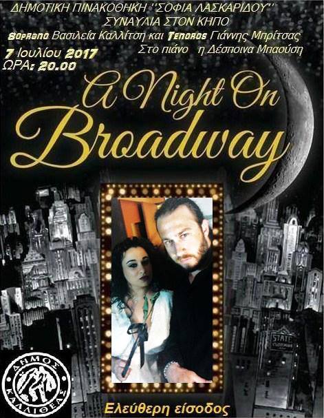 «A night on Broadway» 4 Ιουλίου, 20172 Φεβρουαρίου, 2023 athinapoli Συναυλία στον κήπο με τους: Βασιλεία Καλλίτση & Γιάννη Μπρίτσα Παρασκευή 7 Ιουλίου 2017 , στις 20:00 ΕΙΣΟΔΟΣ ΕΛΕΥΘΕΡΗ Δημοτική Πινακοθήκη Καλλιθέας «Σοφία Λασκαρίδου» (Οδ. Λασκαρίδου 120 & Φιλαρέτου)