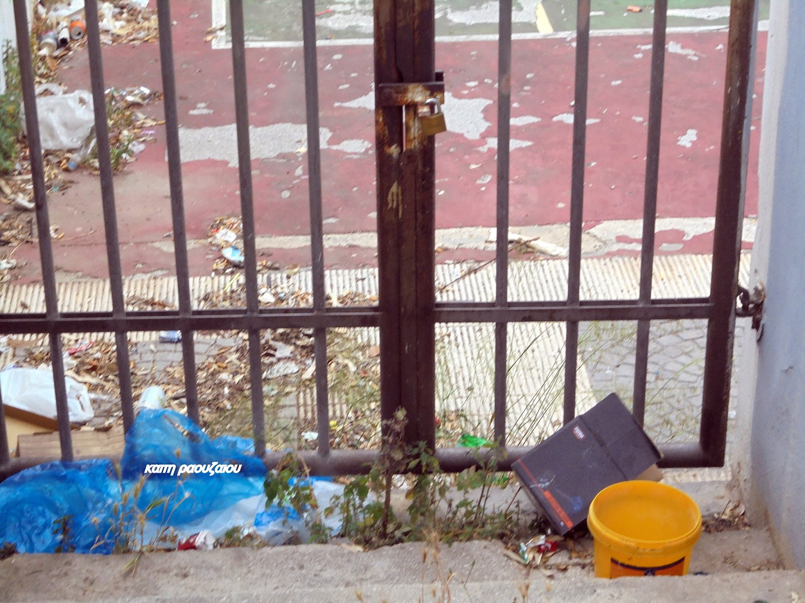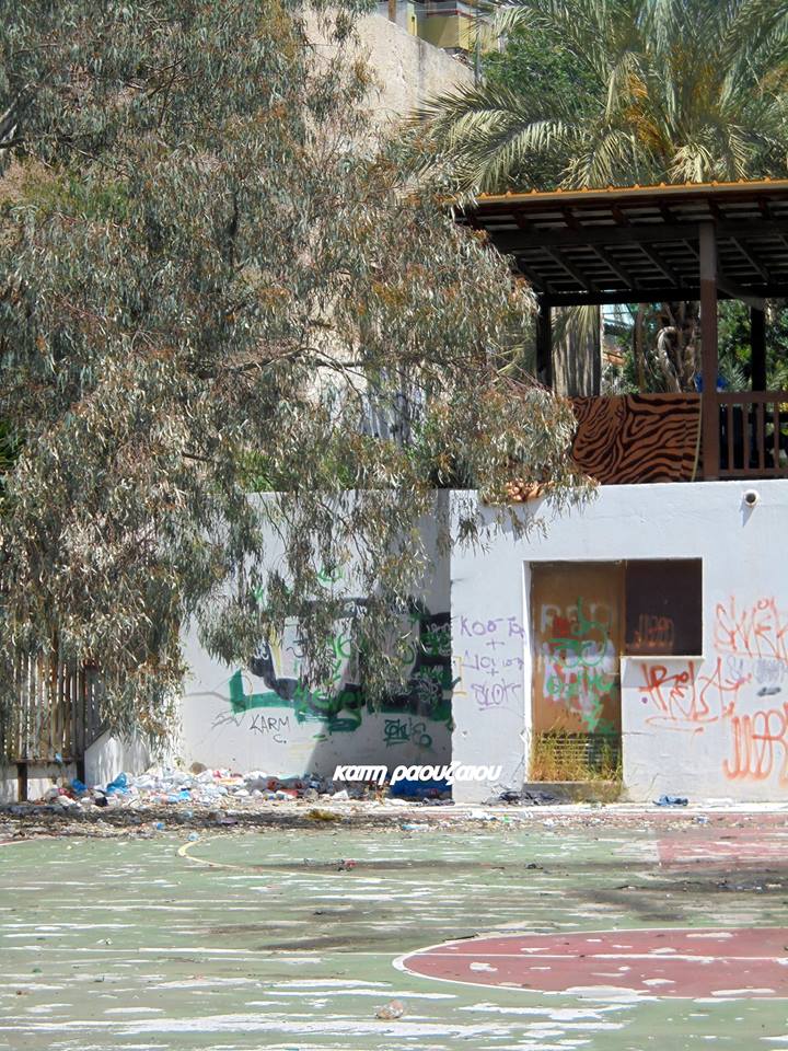 Η εγκατάλειψη φαίνεται στο χώρο άθλησης των παιδιών που παραμένει κλειστός –και δεν έχει καμία σημασία αν είναι ιδιοκτησίας του Δήμου Αθηναίων, αφού τα ζητήματα αυτά λύνονται μ’ ένα τηλεφώνημα- κι έχει καταστεί εστία μικροβίων και –σύμφωνα με καταγγελίες κατοίκων της περιοχής- τέλεσης πράξεων που παραβιάζουν το νόμο.