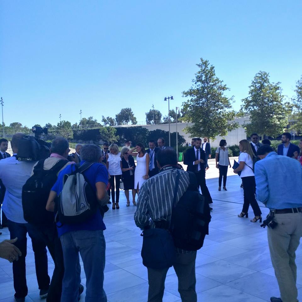 Ιδιαίτερα εντυπωσιασμένη φάνηκε από το Ίδρυμα Σταύρος Νιάρχος η Πρώτη Κυρία της Γαλλίας Μπριτζίτ Μακρόν, που επισκέφθηκε τον χώρο συνοδεία της συντρόφου του πρωθυπουργού, Περιστέρας Μπαζιάνα.