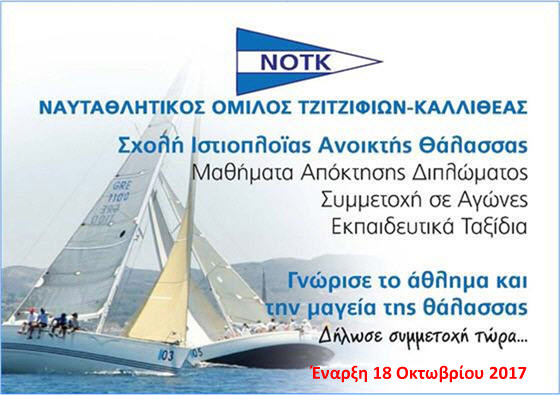 Οι σχολές Ιστιοπλοΐας Ανοιχτής Θαλάσσης για ενήλικες ξεκινούν στις 18 Οκτωβρίου 2017.