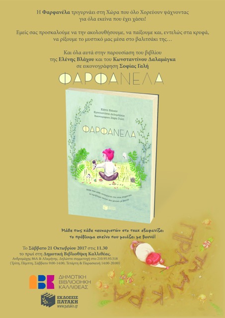 «ΦΑΡΦΑΝΕΛΑ» 17 Οκτωβρίου, 20172 Φεβρουαρίου, 2023 athinapoli ΔΗΜΟΤΙΚΗ ΒΙΒΛΙΟΘΗΚΗ (ΑΝΔΡΟΜΑΧΗΣ 86Α) «ΦΑΡΦΑΝΕΛΑ» ΠΑΡΟΥΣΙΑΣΗ ΒΙΒΛΙΟΥ ΣΑΒΒΑΤΟ 21 ΟΚΤΩΒΡΙΟΥ 2017 στις 11:30 ΕΙΣΟΔΟΣ ΕΛΕΥΘΕΡΗ – ΣΥΜΜΕΤΟΧΕΣ ΣΤΟ : 2109593518