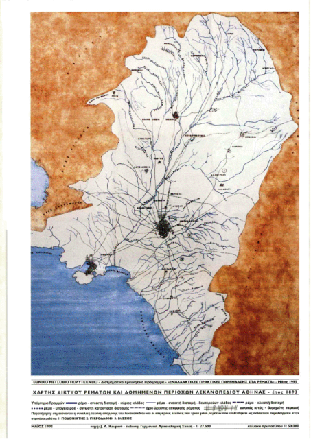 [Χάρτης του δικτύου ρεμάτων και xartismeta1385295490δομημένων επιφανειών λεκανοπεδίου Αθήνας – 1988]