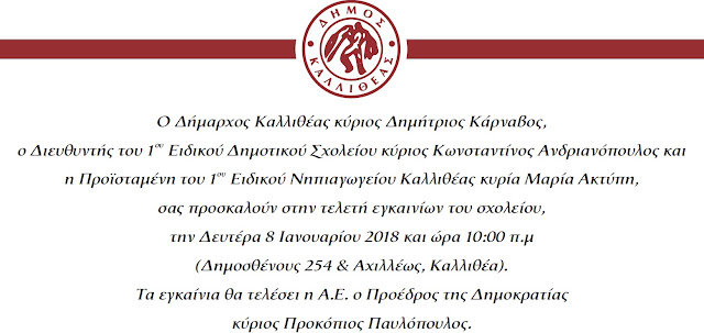 σας προσκαλούν στην τελετή εγκαινίων του σχολείου,