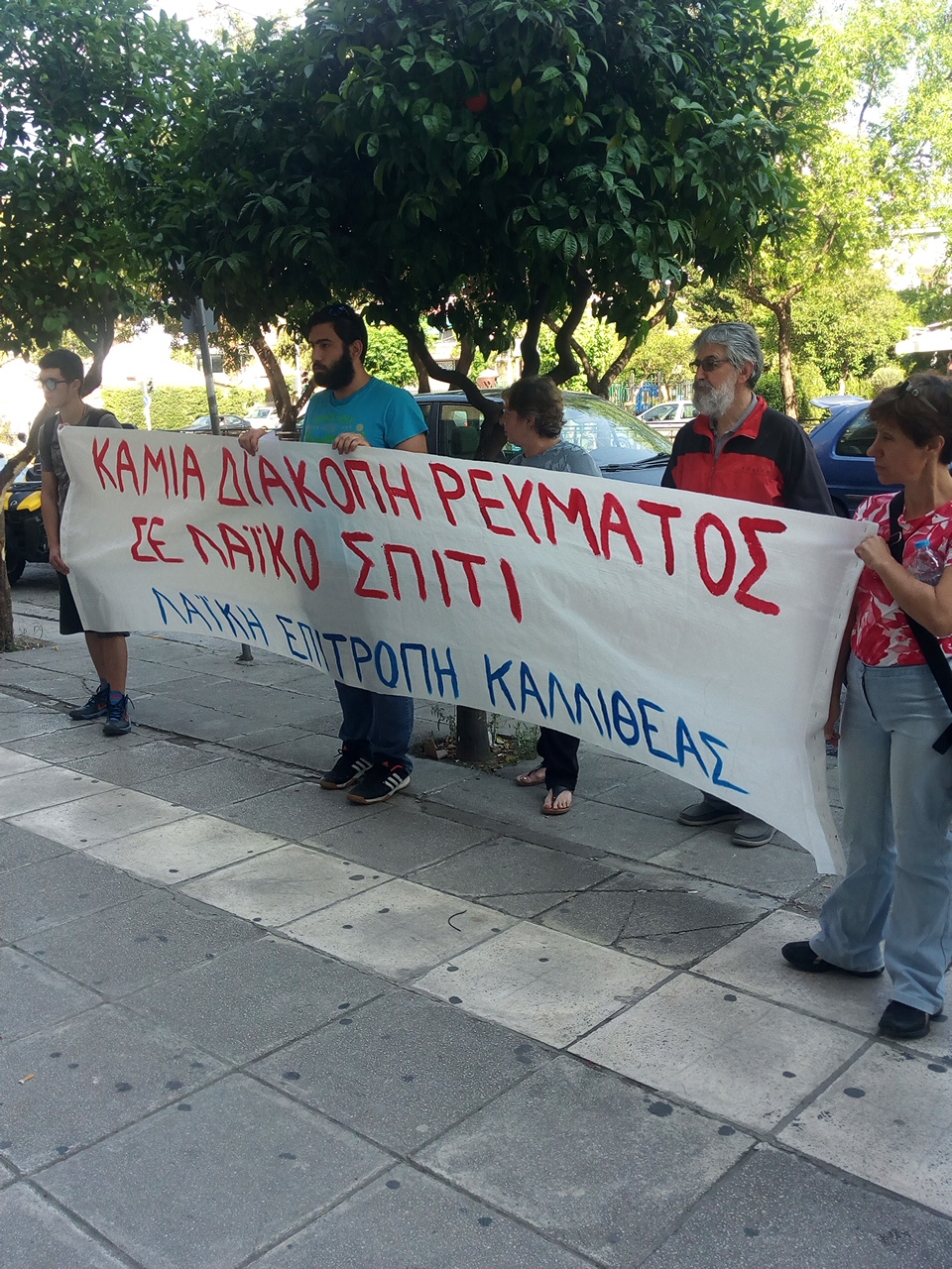 Η Λαϊκή Επιτροπή Καλλιθέας δεν θα επιτρέψει να μείνει καμία οικογένεια στο σκοτάδι. Καλεί όποιον έχει πρόβλημα με τη ΔΕΗ να έρθει σε επαφή μαζί της και να μη σκύψει το κεφάλι, να αγωνιστεί για φτηνό ρεύμα για όλον το λαό.
