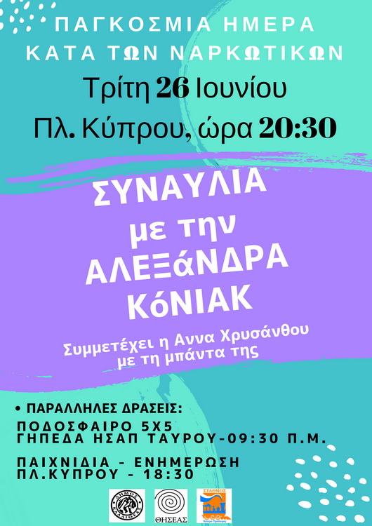 21:00 Συναυλία με την ΑΛΕΞάΝΔΡΑ ΚόΝΙΑΚ – Συμμετέχει η Άννα Χρυσάνθου με τη μπάντα της