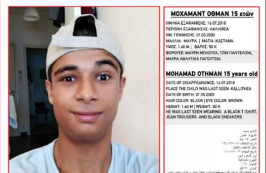 Με ανακοίνωσή του το Χαμόγελο του παιδιού γνωστοποίησε ότι βρέθηκε ο 15χρονος Όθμαν Μοχάμαντ, ο οποίος είχε εξαφανιστεί πριν τρεις μήνες στην περιοχή της Καλλιθέας.