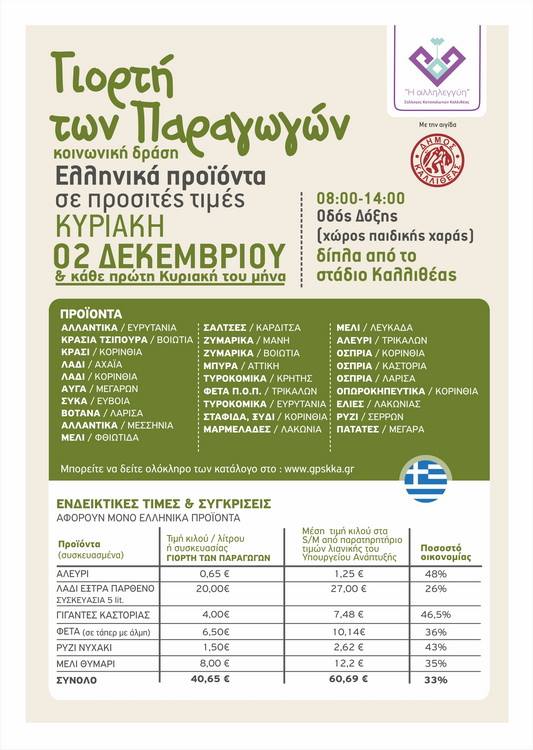 Καλλιθέα, Κυριακή 2 Δεκεμβρίου, Γιορτή των Παραγωγών 29 Νοεμβρίου, 20182 Φεβρουαρίου, 2023 athinapoli