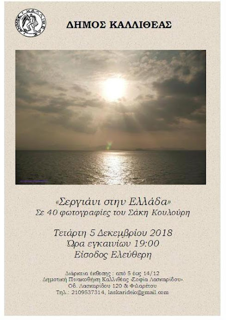 «Σεργιάνι στην Ελλάδα» 11 Δεκεμβρίου, 20182 Φεβρουαρίου, 2023 athinapoli Σε 40 φωτογραφίες του Σάκη Κουλούρη Διάρκεια έκθεσης: ‘Eως 14/12/2018 ΕΙΣΟΔΟΣ ΕΛΕΥΘΕΡΗ