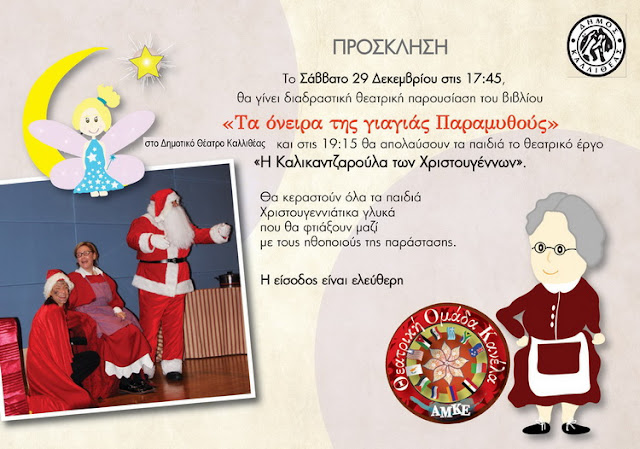 «Τα όνειρα της γιαγιάς Παραμυθούς» & «Η Καλικαντζαρούλα των Χριστουγέννων» 20 Δεκεμβρίου, 20182 Φεβρουαρίου, 2023 athinapoli Διαδραστική θεατρική παρουσίαση βιβλίου & θεατρική παράσταση για παιδιά ΣΑΒΒΑΤΟ 29 ΔΕΚΕΜΒΡΙΟΥ 2018 στις 17:45 & 19:15 ΕΙΣΟΔΟΣ ΕΛΕΥΘΕΡΗ
