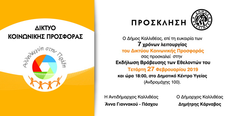 Ο Δήμος Καλλιθέας επί τη ευκαιρία των 7 χρόνων λειτουργίας του Δικτύου Κοινωνικής Προσφοράς