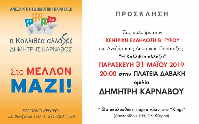 Απόψε στις 8 στην πλατεία Δαβάκη η κεντρική εκδήλωση του Δημήτρη Κάρναβου 31 Μαΐου, 20192 Φεβρουαρίου, 2023 athinapoli