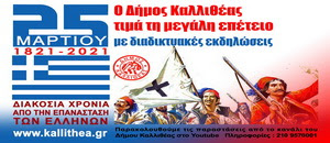 Με οκτώ διαδικτυακές εκδηλώσεις στο πενθήμερο 23-27 Μαρτίου 2021, τιμά ο Δήμος Καλλιθέας τη συμπλήρωση των 200 χρόνων από την Επανάσταση των Ελλήνων.